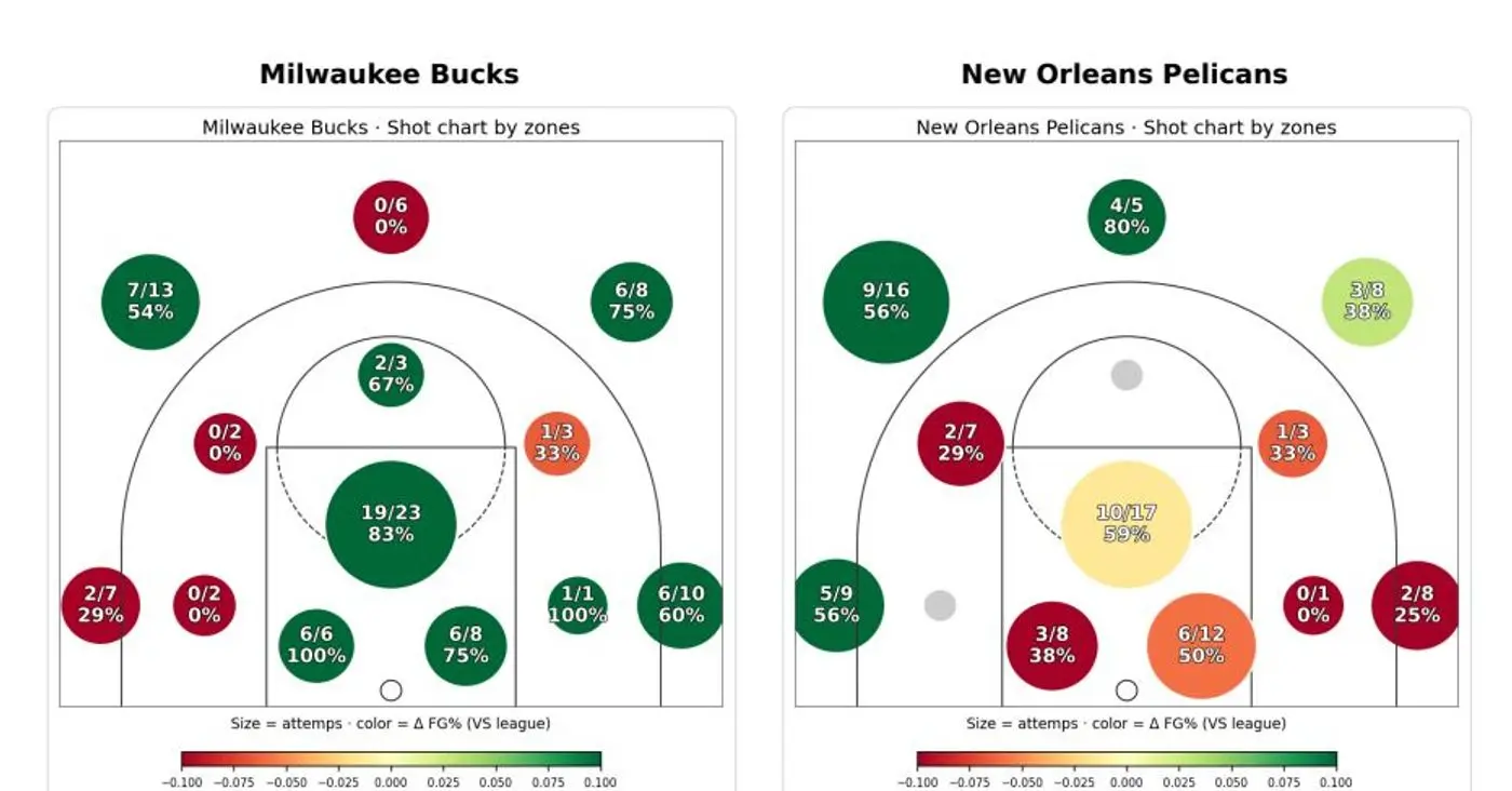 One of the most fascinating sub-stories within the full Milwaukee Bucks vs New Orleans Pelicans stats picture is the dramatic reversal in three-point shooting between the two games.